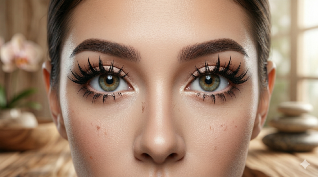 - Professional Hybrid Sets: For those seeking a 3-week wear time, ask your technician for a “Wet Look” Manga Set. This uses closed fans to create the spiky texture while maintaining the health of your natural lashes.